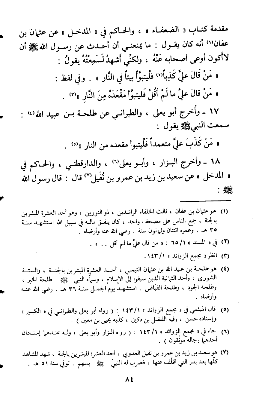وَكَانَ عبد الله بن مَسْعُود يتَغَيَّر عِنْد ذكر الحَدِيث عَن رَسُول الله صلى الله عَلَيْهِ وَسلم وتنتفخ أوداجه ويسيل عرقه وتدمع عَيناهُ وَيَقُول أَو قَرِيبا من هَذَا أَو نَحْو هَذَا أَو شبه هَذَا كل ذَلِك خوفًا من الزِّيَادَة وَالنُّقْصَان أَو السَّهْو وَالنِّسْيَان واحتياطا للدّين وحفظا للشريعة وحسما لطمع طامع أَو زيغ زائغ أَن يجترئ فيحكي عَن رَسُول الله صلى الله عَلَيْهِ وَسلم مَا لم يقلهُ أَو يدْخل فِي الدّين مَا لَيْسَ مِنْهُ وليقتدي بهم من يسمع مِنْهُم وَيَأْخُذ عَنْهُم فيقفو أَثَرهم ويسلك طريقهم فاتبعهم على ذَلِك جمَاعَة من صالحي التَّابِعين واقتفوا آثَارهم وَاتبعُوا سبيلهم فِي الذب عَن السّنَن والبحث عَن رواتها