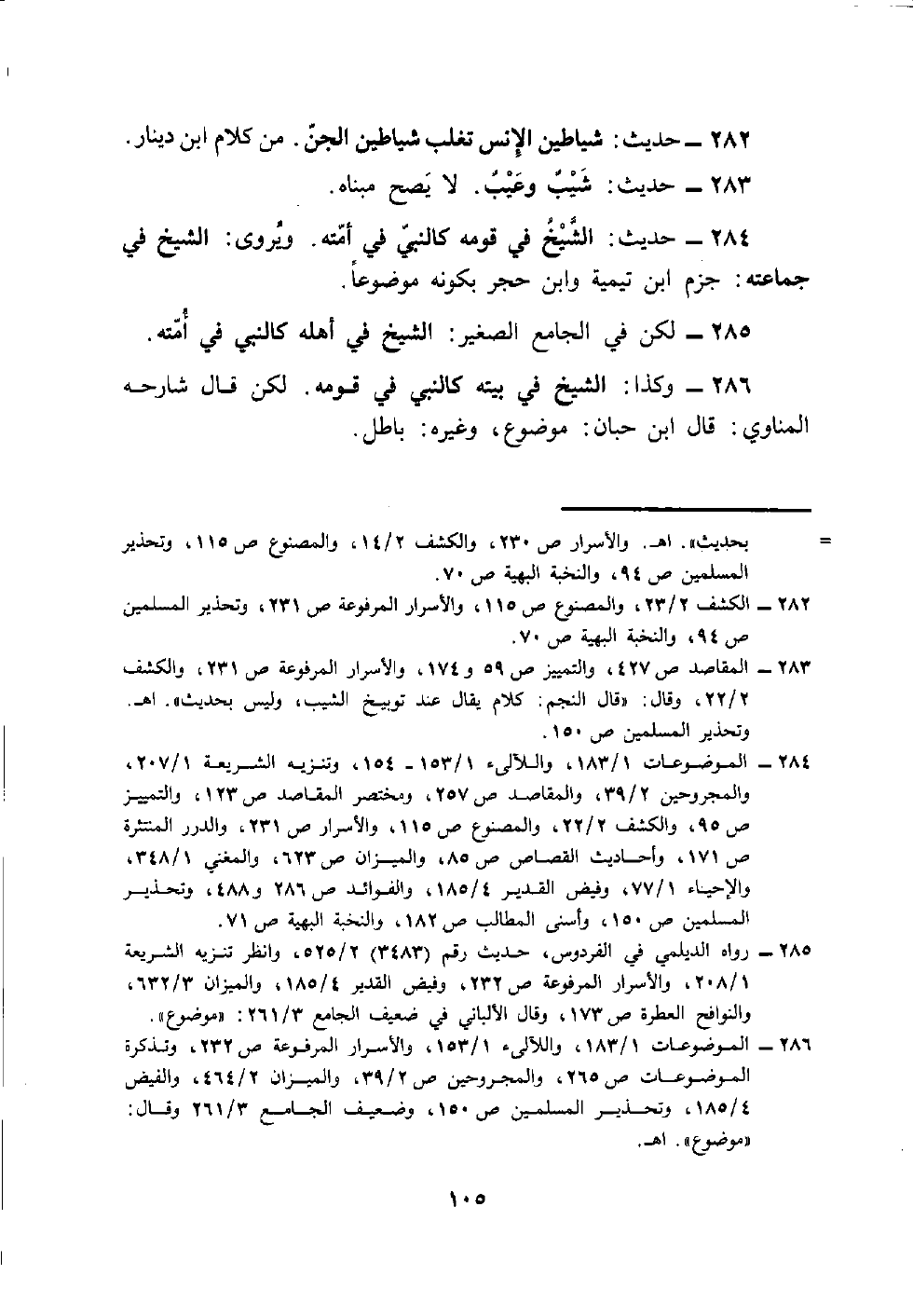 284 - حَدِيث: الشَّيْخ فِي قومه كالنبي فِي أمته. ويروى: الشَّيْخ فِي جماعته: جزم ابْن تَيْمِية وَابْن حجر بِكَوْنِهِ مَوْضُوعا.