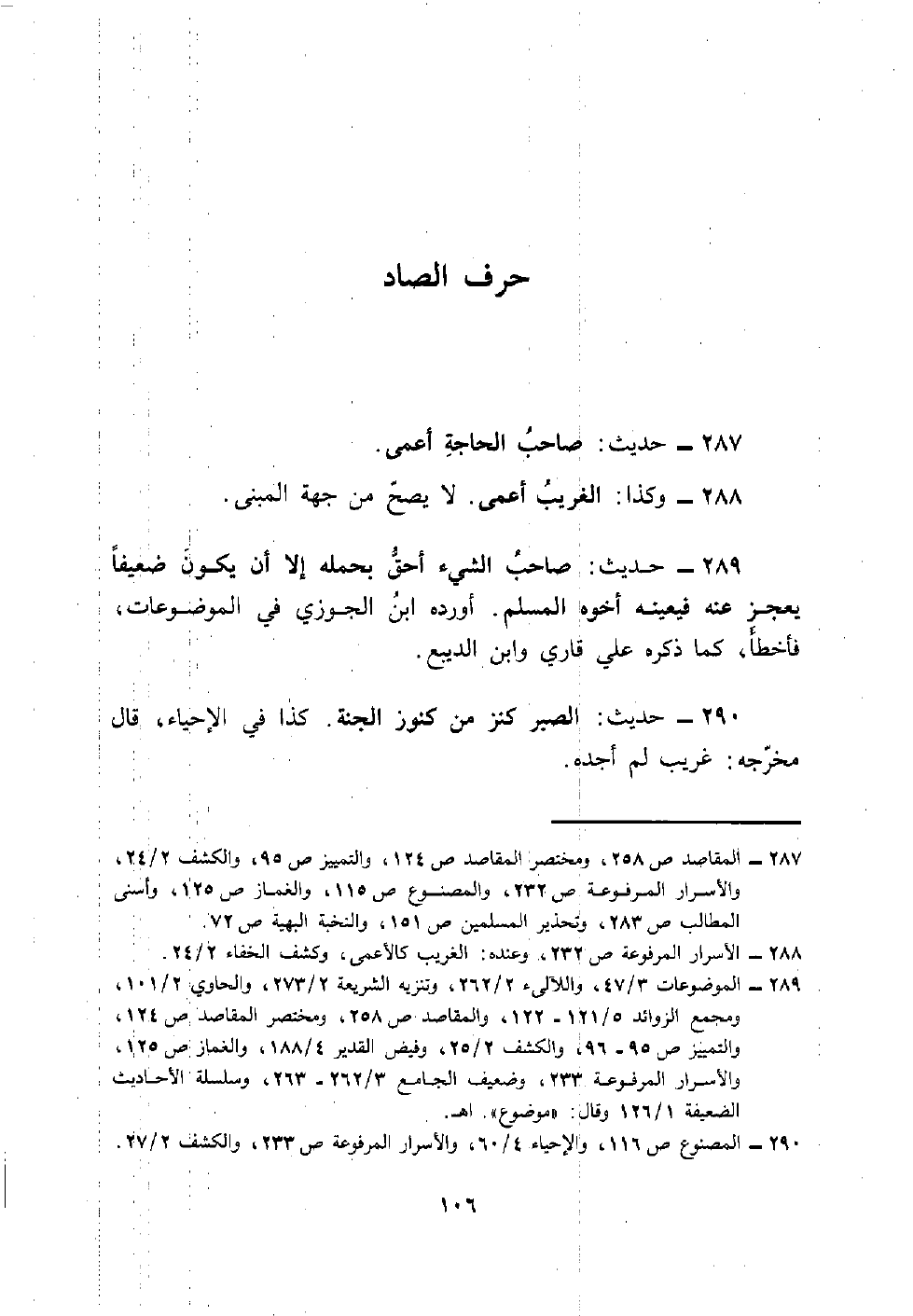 289 - حَدِيث: صَاحب الشَّيْء أَحَق بِحمْلِهِ إِلَّا أَن يكون ضَعِيفا يعجز عَنهُ فيعينه أَخُوهُ الْمُسلم. أوردهُ ابْن الْجَوْزِيّ فِي الموضوعات، فَأَخْطَأَ، كَمَا ذكره عَليّ قاري وَابْن الديبع.