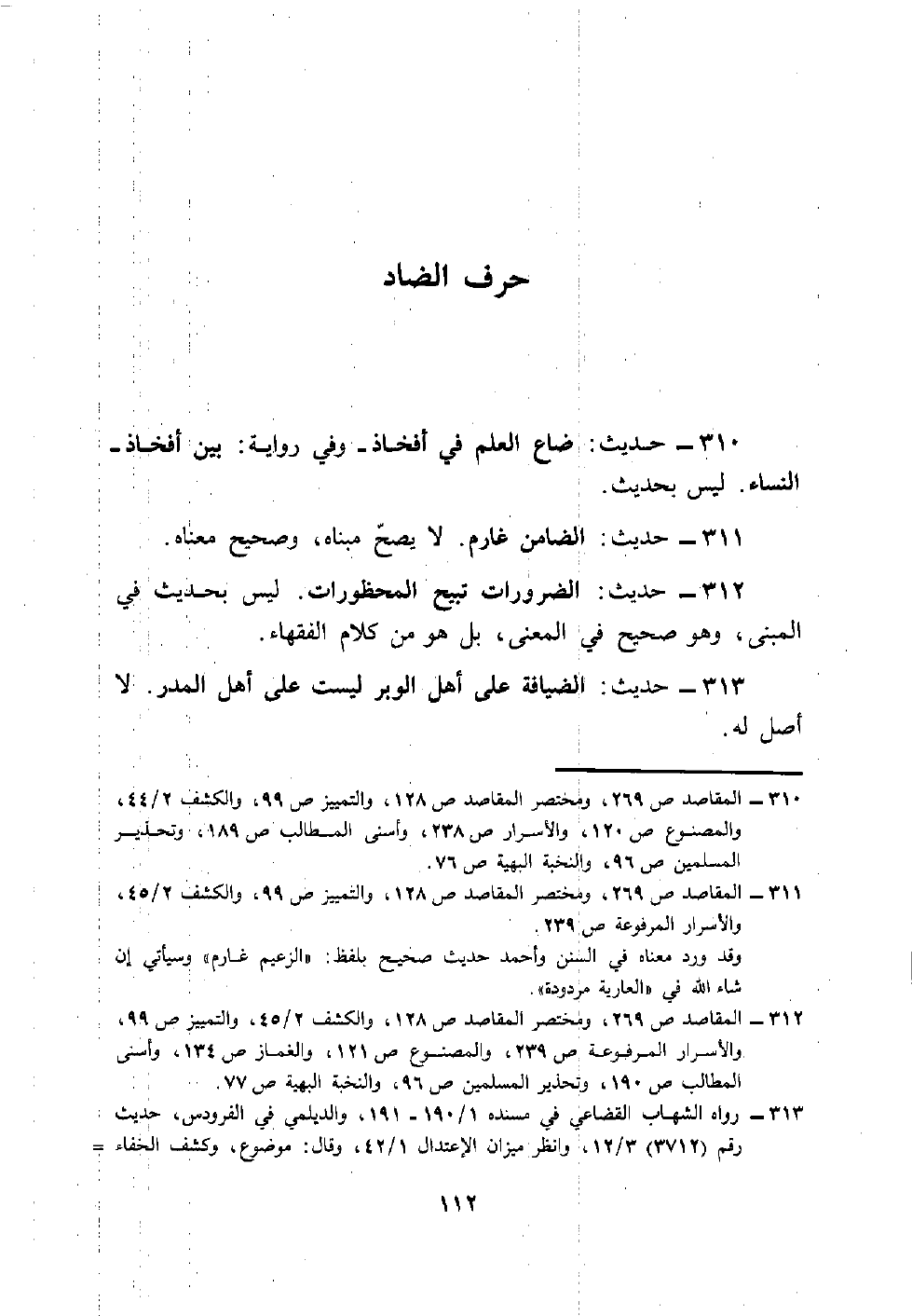 312 - حَدِيث: الضرورات تبيح الْمَحْظُورَات. لَيْسَ بِحَدِيث فِي المبنى، وَهُوَ صَحِيح فِي الْمَعْنى، بل هُوَ من كَلَام الْفُقَهَاء.