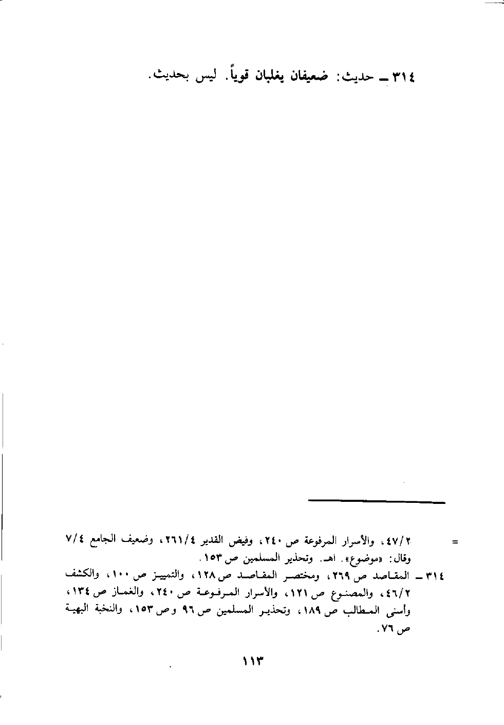 314 - حَدِيث: ضعيفان يغلبان قَوِيا. لَيْسَ بِحَدِيث.