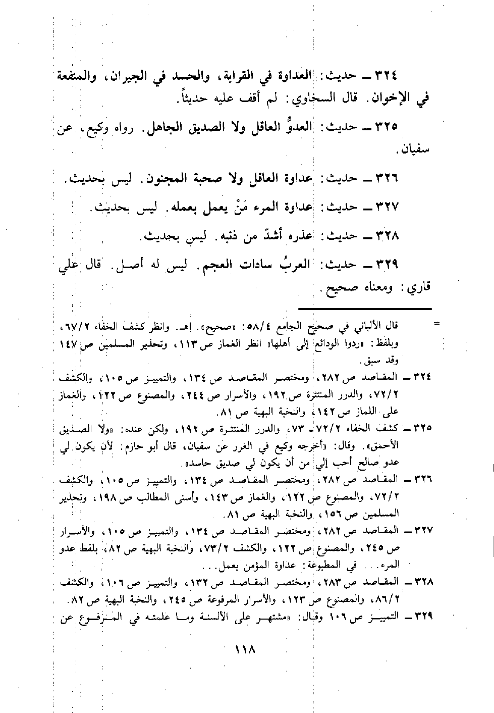 324 - حَدِيث: الْعَدَاوَة فِي الْقَرَابَة، والحسد فِي الْجِيرَان، وَالْمَنْفَعَة فِي الإخوان. قَالَ السخاوي: لم أَقف عَلَيْهِ حَدِيثا.