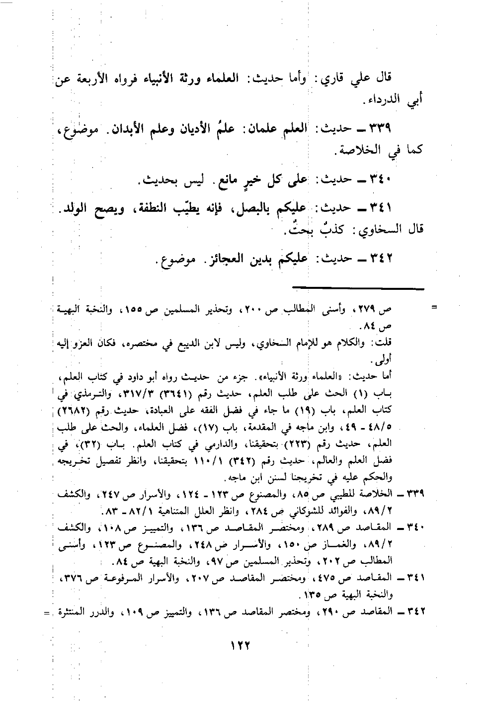 339 - حَدِيث: الْعلم علمَان: علم الْأَدْيَان وَعلم الْأَبدَان. مَوْضُوع، كَمَا فِي الْخُلَاصَة.