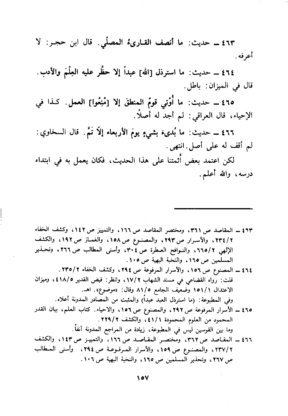 465 - حَدِيث: مَا أُوتِيَ قوم الْمنطق إِلَّا [منعُوا] الْعَمَل. كَذَا فِي الْإِحْيَاء، قَالَ الْعِرَاقِيّ: لم أجد لَهُ أصلا.