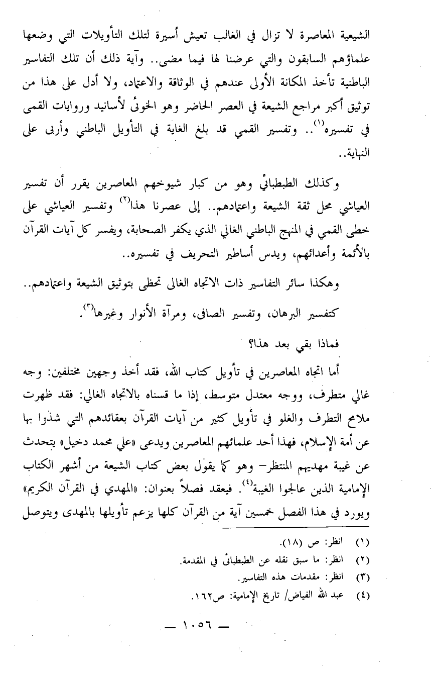 المجال الثاني: (اتجاه المعاصرين في تأويل كتاب الله) : هل تخلص شيعة العصر الحاضر من لوثة ذلك الاتجاه المغرق في التأويل الباطني الذي درج عليه شيوخهم القدامى في تأويل كتاب الله كالقمي والكليني والعياشي والكاشاني والبحراني وأضرابهم.. أو هم على آثارهم يهرعون؟