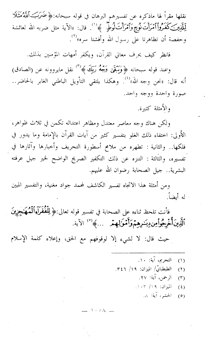 ولكن هناك وجه معاصر معتدل، ومظاهر اعتداله تكمن في ثلاث ظواهر، الأولى: اختفاء ذلك الغلو بتفسير كثير من آيات القرآن بالإمامة وما يدور في فلكها.. والثانية: تطهره من ملامح أسطورة التحريف وأخبارها وآثارها في تفسيره، والثالثة: التنزه عن ذلك التكفير الصريح الواضح لخير جيل عرفته البشرية.. جيل الصحابة رضوان الله عليهم.