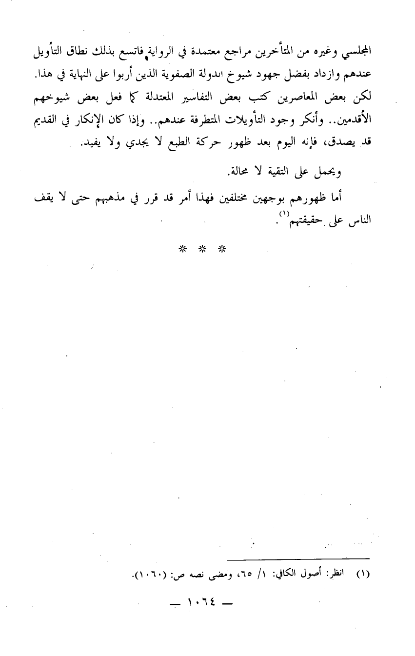 المجلسي وغيره من المتأخرين مراجع معتمدة في الرواية فاتسع بذلك نطاق التأويل عندهم وازداد بفضل جهود شيوخ الدولة الصفوية الذي أربوا على النهاية في هذا.