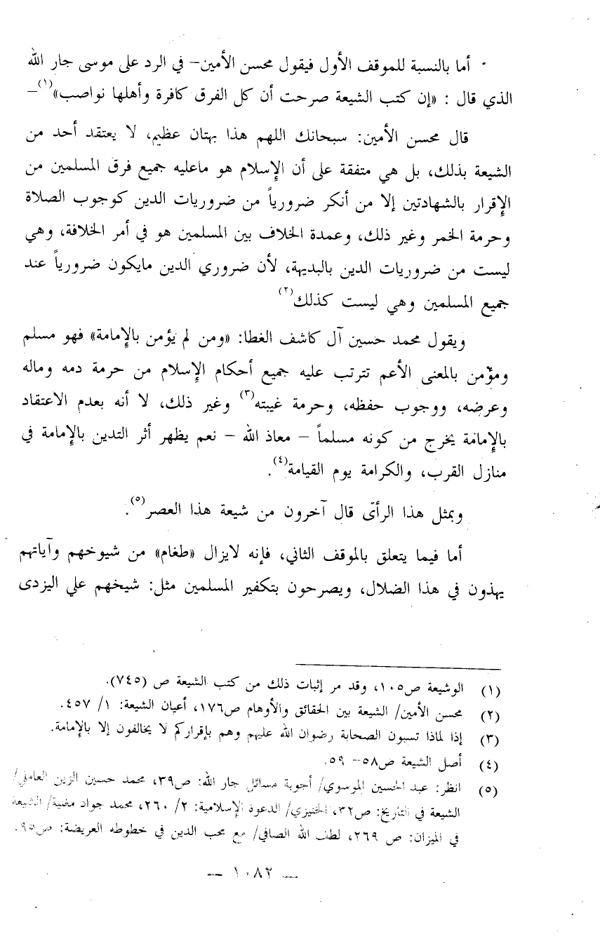 (¬5) انظر: عبد الحسين الموسوي/ أجوبة مسائل جار الله: ص39، محمد حسين الزين العاملي/ الشيعة في التاريخ: ص32، الخنيزي/ الدعوة الإسلامية: 2/260، محمد جواد مغنية/ الشيعة في الميزان: ص269، لطف الله الصافي/ مع محب الدين في خطوطه العريضة: ص95