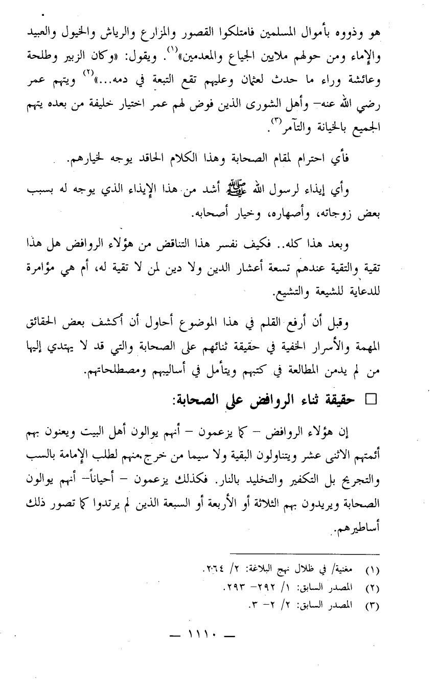 إن هؤلاء الروافض - كما يزعمون - أنهم يوالون أهل البيت ويعنون بهم أئمتهم الاثني عشر ويتناولون البقية ولا سيما من خرج منهم لطلب الإمامة بالسب والتجريح بل التكفير والتخليد بالنار. فكذلك يزعمون - أحياناً - أنهم يوالون الصحابة ويريدون بهم الثلاثة أو الأربعة أو السبعة الذين لم يرتدوا كما تصور ذلك أساطيرهم.