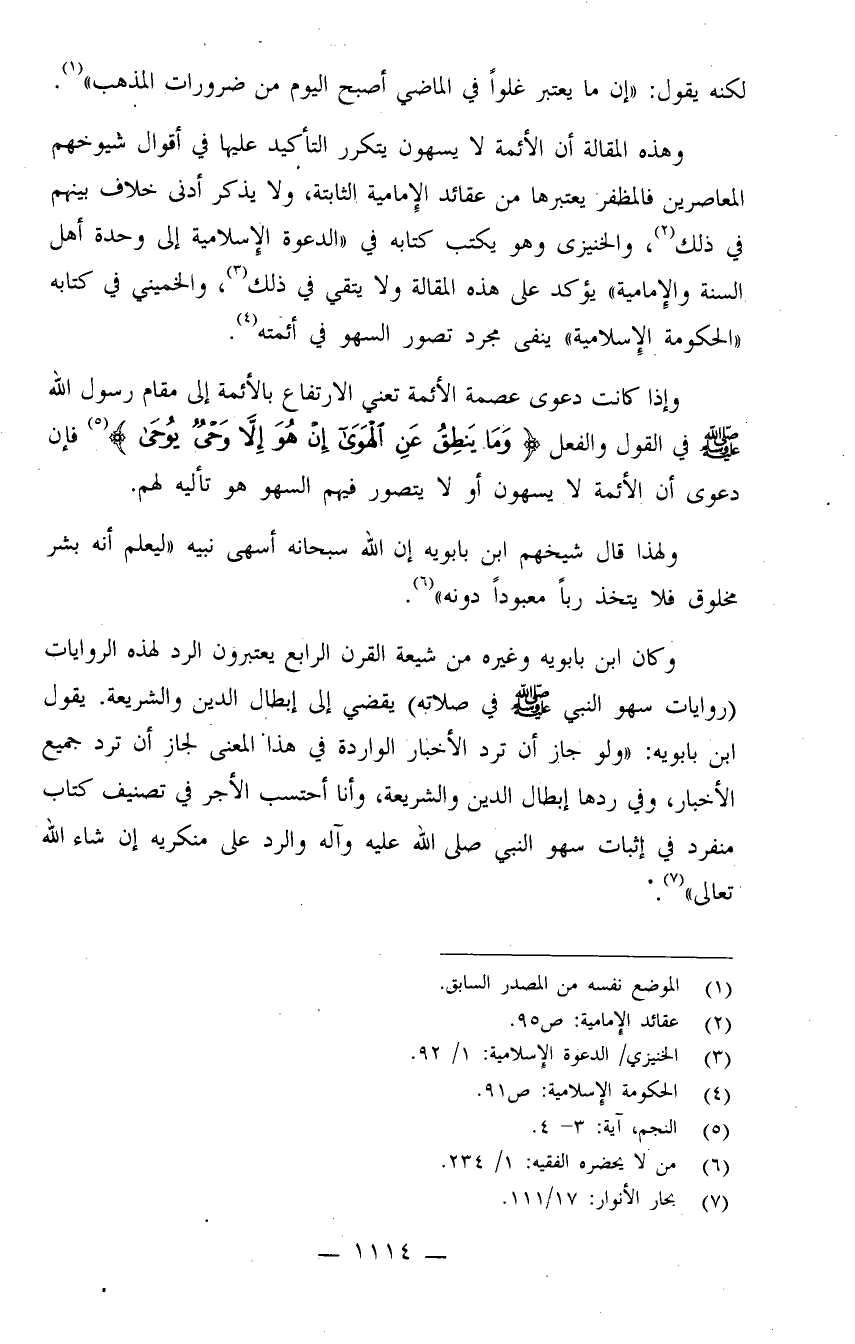 ولهذا قال شيخهم ابن بابويه: إن الله سبحانه أسهى نبيه "ليعلم أنه بشر مخلوق فلا يتخذ رباً معبوداً دونه" (¬6) .