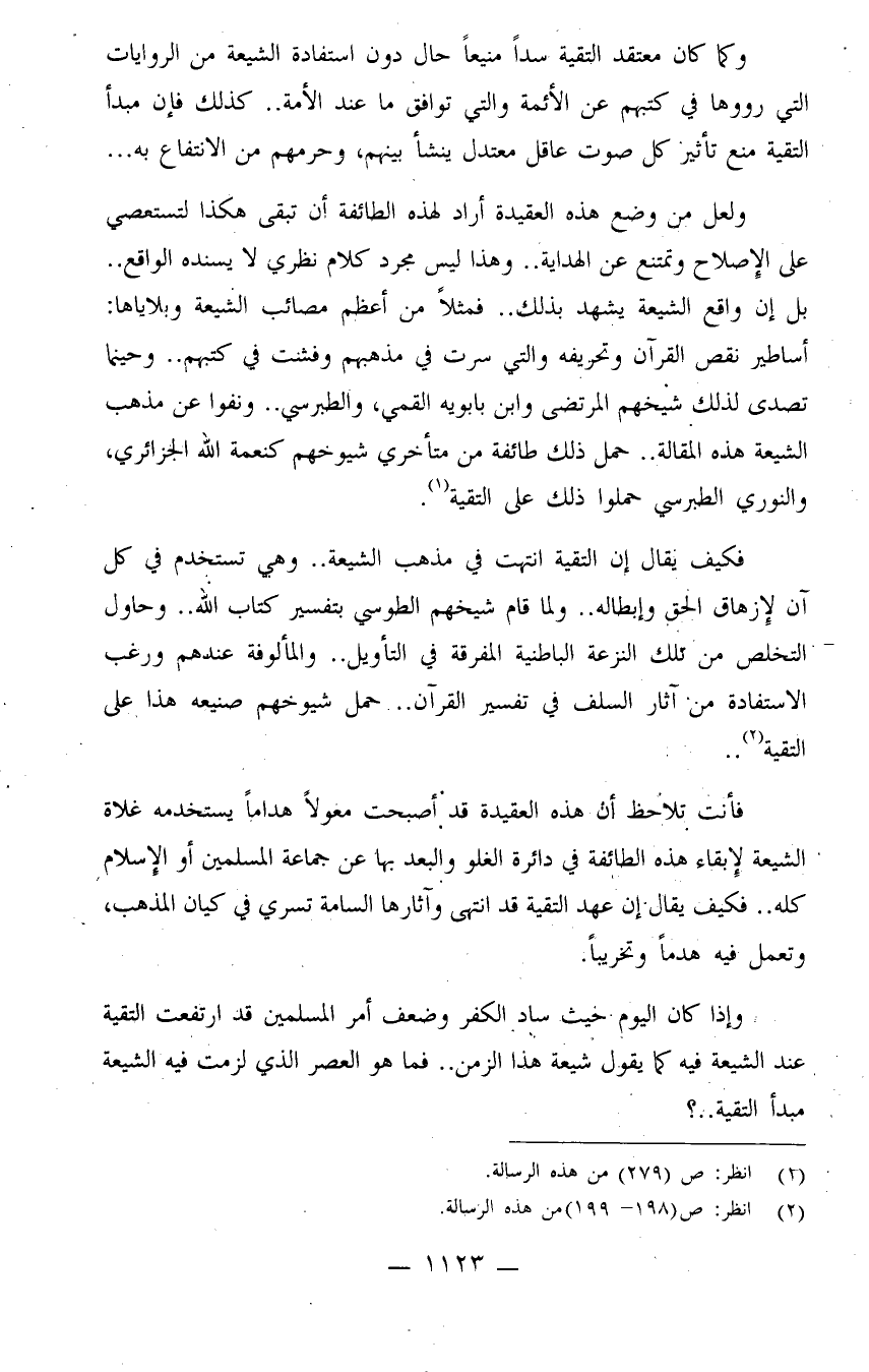 فأنت تلاحظ أن هذه العقيدة قد أصبحت معولاً هداماً يستخدمه غلاة الشيعة لإبقاء هذه الطائفة في دائرة الغلو والبعد بها عن جماعة المسلمين أو الإسلام كله.. فكيف يقال إن عهد التقية قد انتهى وآثارها السامة تسري في كيان المذهب، وتعمل فيه هدماً وتخريباً؟!