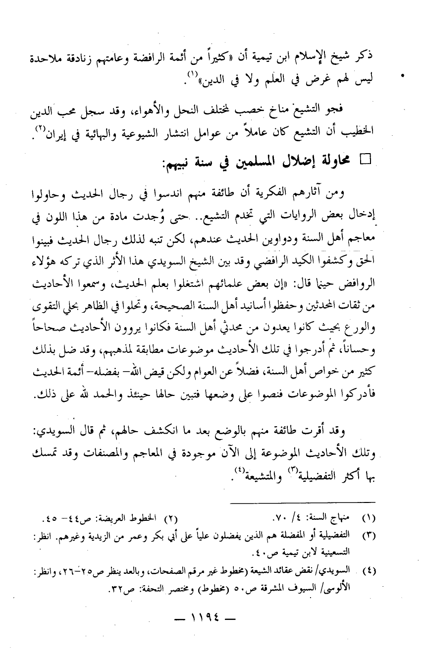 (¬4) السويدي/ نقض عقائد الشيعة (مخطوط غير مرقم الصفحات، وبالعد ينظر ص25-26، وانظر: الألوسي/ السيوف المشرقة: ص50 (مخطوط) ، ومختصر التحفة: ص32