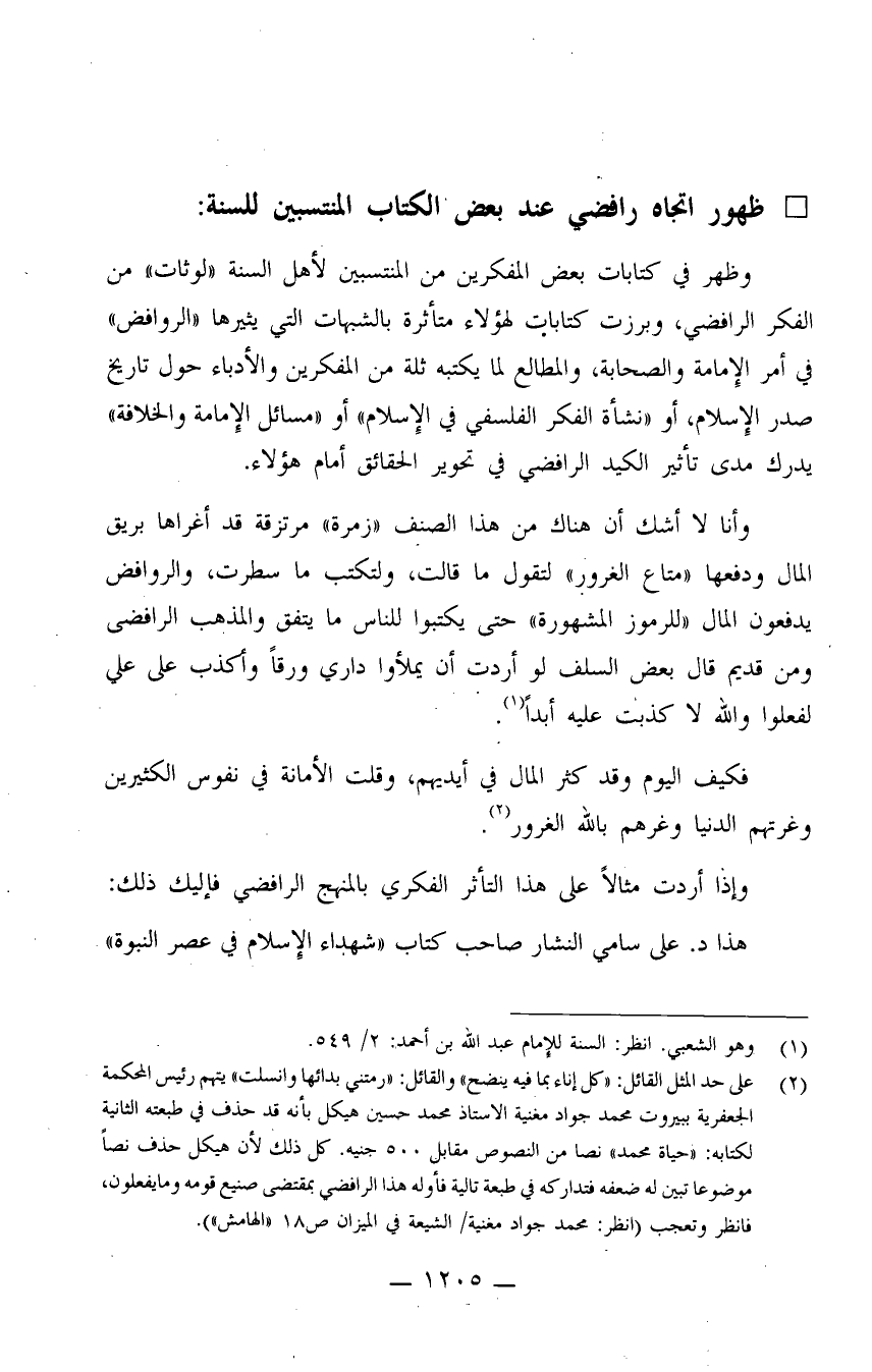 ظهور اتجاه رافضي عند بعض الكتاب المنتسبين للسنة: