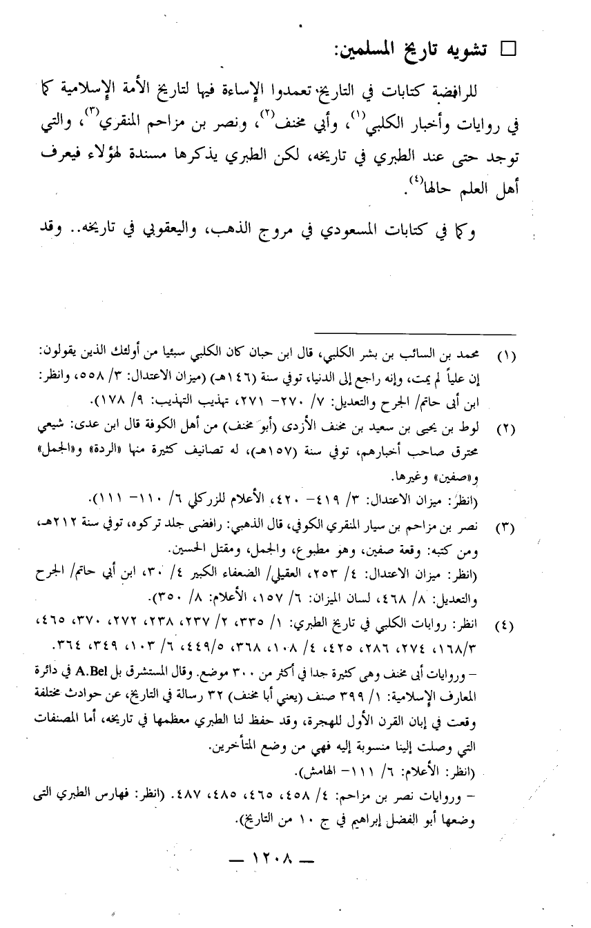 (¬4) انظر: روايات الكلبي في تاريخ الطبري: 1/355، 2/237، 238، 272، 370، 465، 3/168، 274، 286، 425، 4/108، 368، 5/449، 6/103، 349، 364.
