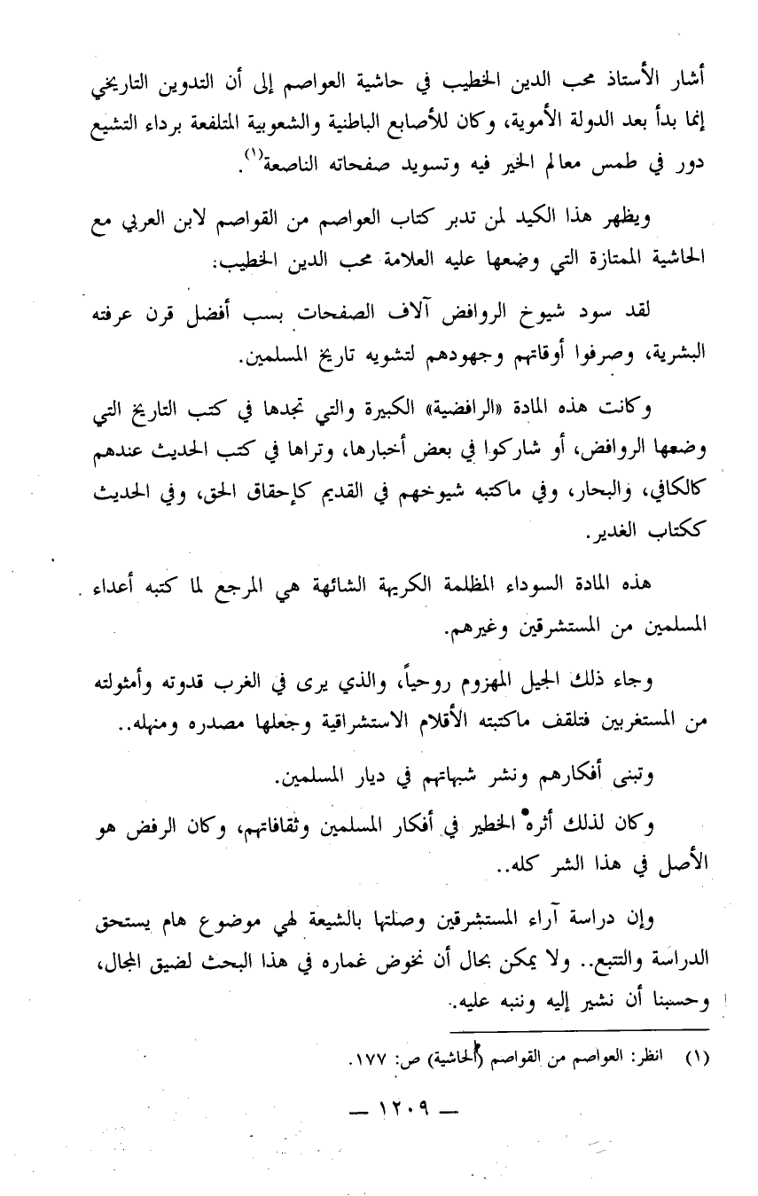 وكانت هذه المادة "الرافضية" الكبيرة والتي تجدها في كتب التاريخ التي وضعها الروافض، أو شاركوا في بعض أخبارها، وتراها في كتب الحديث عندهم كالكافي، والبحار، وفي ما كتب شيوخهم في القديم كإحقاق الحق، وفي الحديث ككتاب الغدير.