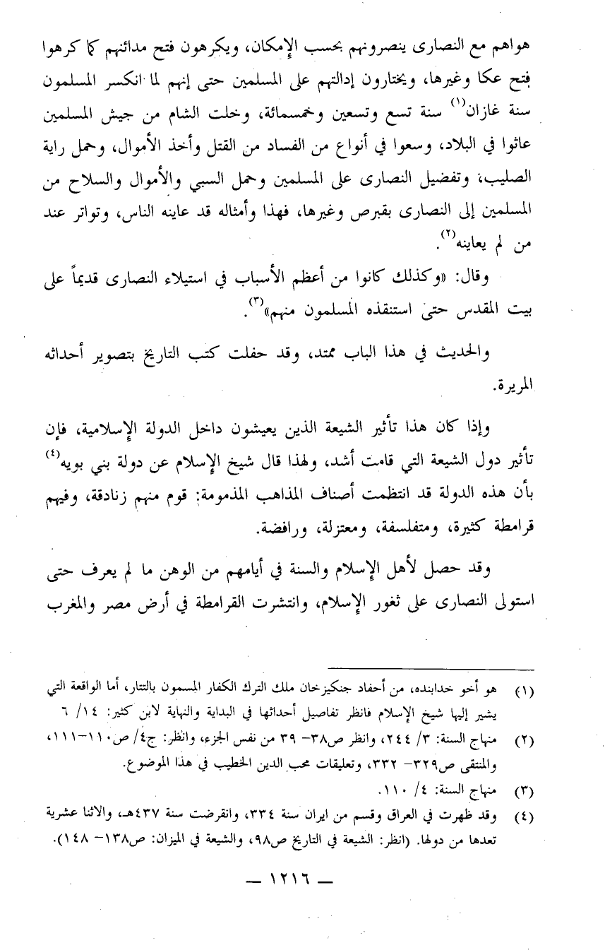 (¬1) هو أخو خدابنده، من أحفاد جنكيز خان ملك الترك الكفار المسمون بالتتار، أما الواقعة التي يشير إليها شيخ الإسلام فانظر تفاصيل أحداثها في البداية والنهاية لابن كثير: 14/6