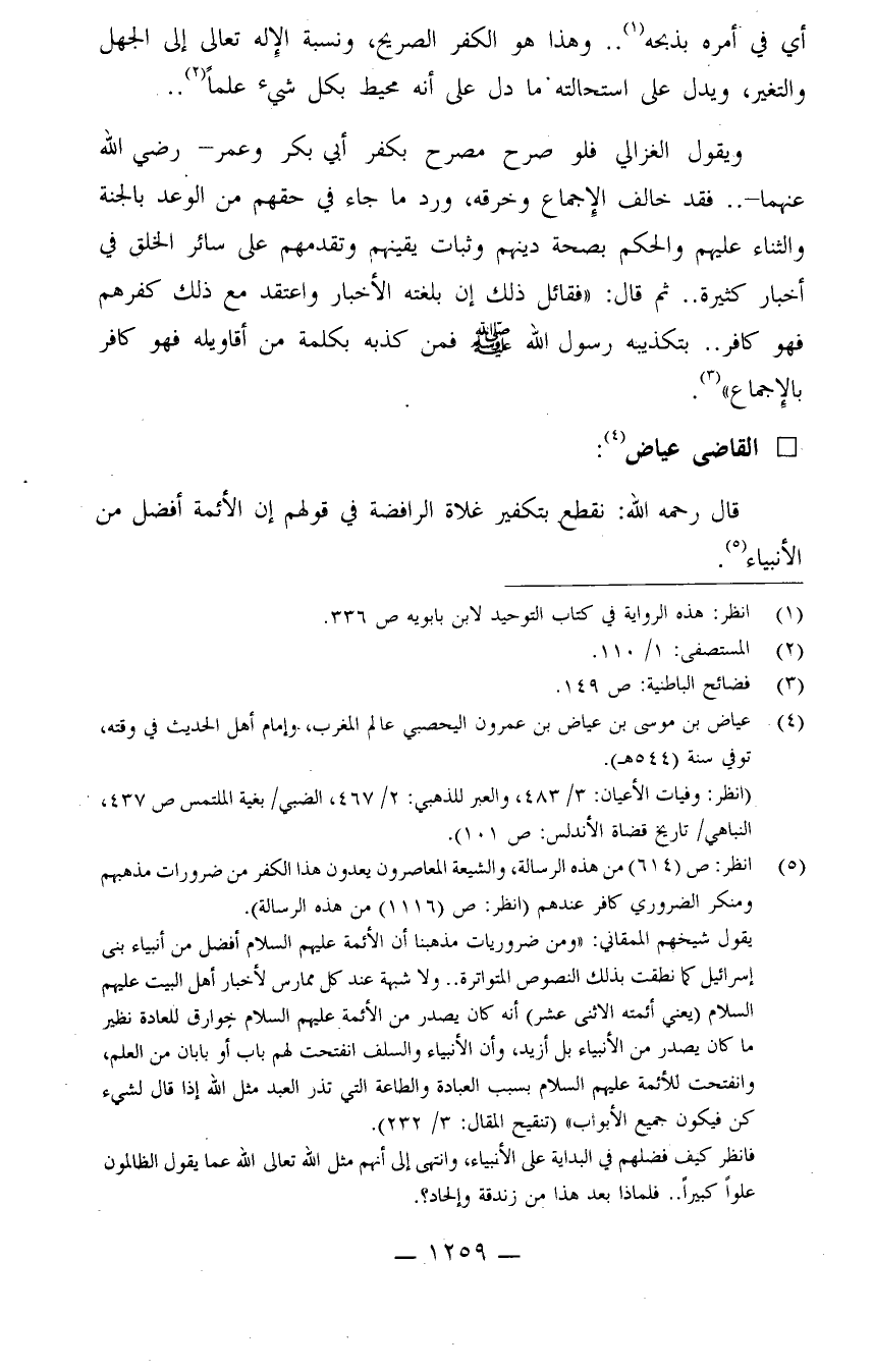 (¬5) انظر: (614) من هذه الرسالة، والشيعة المعاصرون يعدون هذا الكفر من ضرورات مذهبم ومنكر الضروري كافر عندهم (انظر: ص 1116) من هذه الرسالة) .
