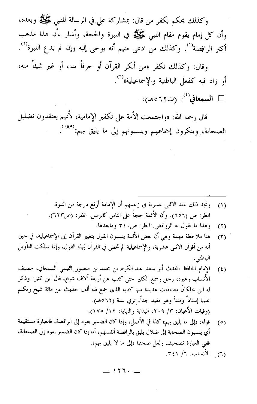 (¬5) قوله: "إلى ما يليق بهم" كذا في الأصل، وإذا كان الضمير يعود إلى الرافضة، فالعبارة مستقيمة أي ينسبون الصحابة إلى ضلال يليق بالرافضة أنفسهم، إما إذا كان الضمير يعود إلى الصحابة، ففي العبارة تصحيف، ولعل صحتها "إلى ما لا يليق بهم"