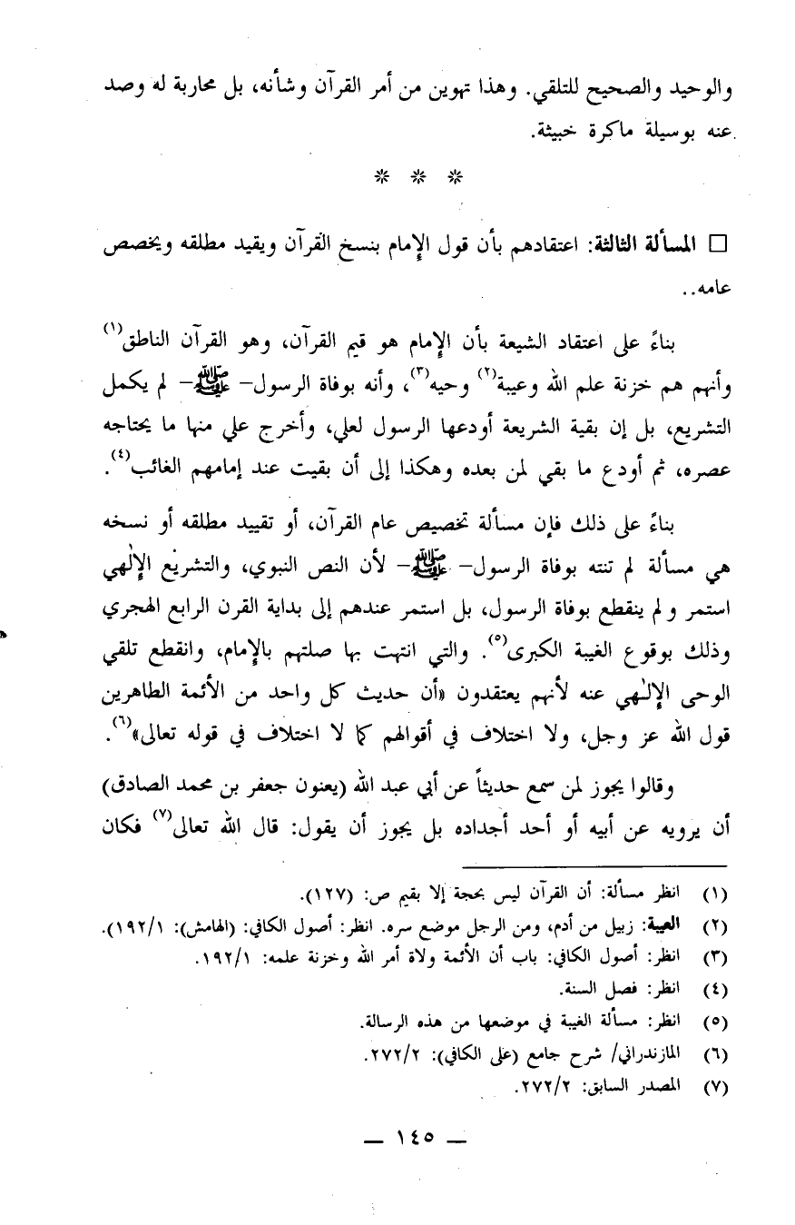 (¬3) انظر: أصول الكافي: باب أن الأئمة ولاة أمر الله وخزنة علمه: 1/192