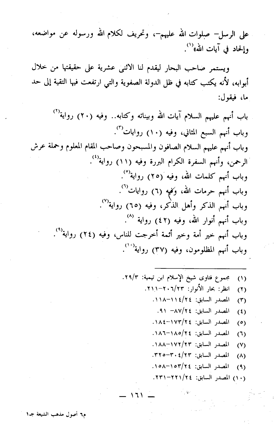 ويستمر صاحب البحار ليقدم لنا الاثني عشرية على حقيقتها من خلال أبوابه، لأنه يكتب كتابه في ظل الدولة الصفوية والتي ارتفعت فيها التقية إلى حد ما، فيقول: