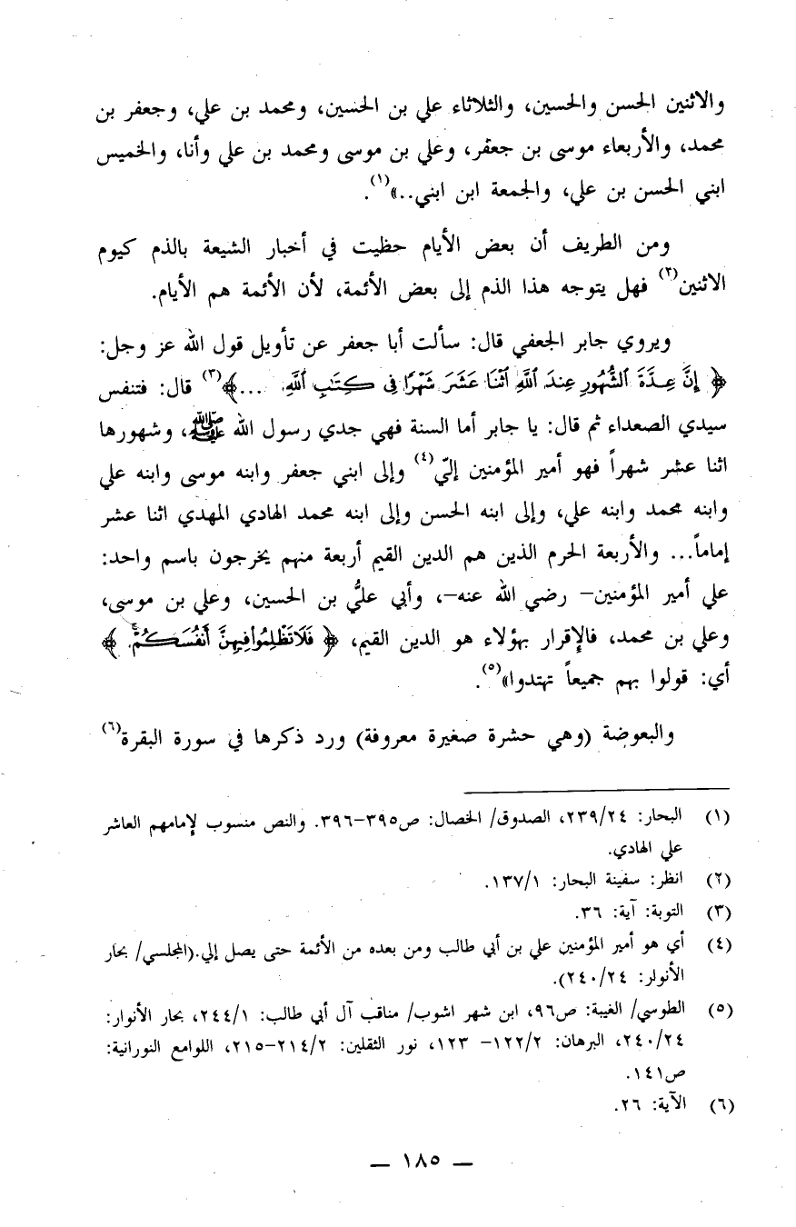 ومن الطريف أن بعض الأيام حظيت في أخبار الشيعة بالذم كيوم الاثنين (¬2) ، فهل يتوجه هذا الذم إلى بعض الأئمة؛ لأن الأئمة هم الأيام؟!