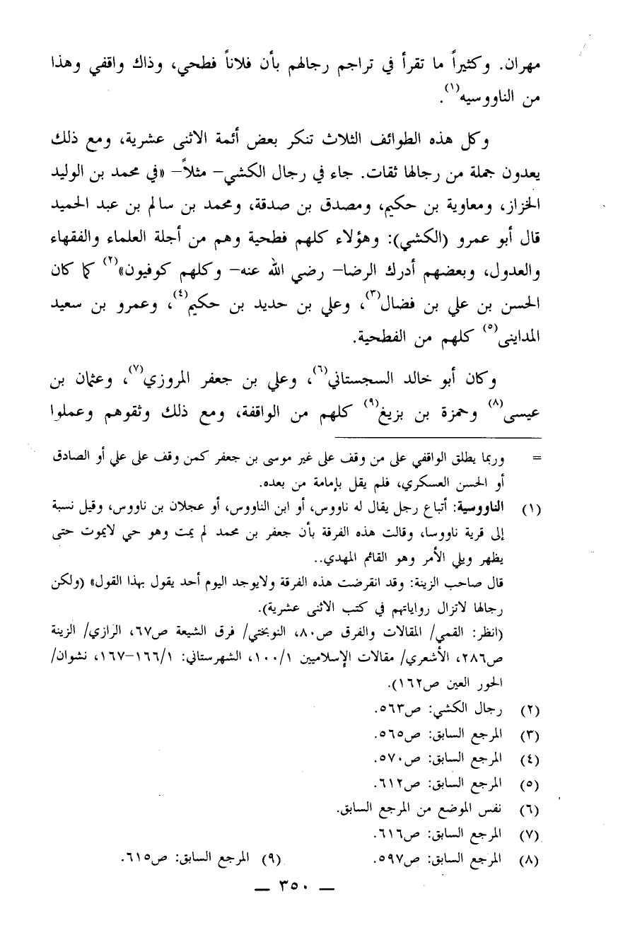 مهران. وكثيراً ما تقرأ في تراجم رجالهم بأن فلاناً فطحي، وذاك واقفي وهذا من الناووسية (¬1) .