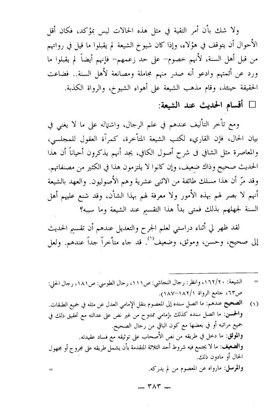 أقسام الحديث عند الشيعة: