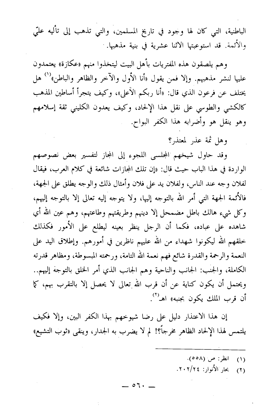 إن هذا الاعتذار دليل على رضا شيوخهم بهذا الكفر البين، وإلا فكيف يلتمس لهذا الإلحاد الظاهر مخرجًا؟! لم لا يضرب به الجدار، وينقي "ثوب التشيع"