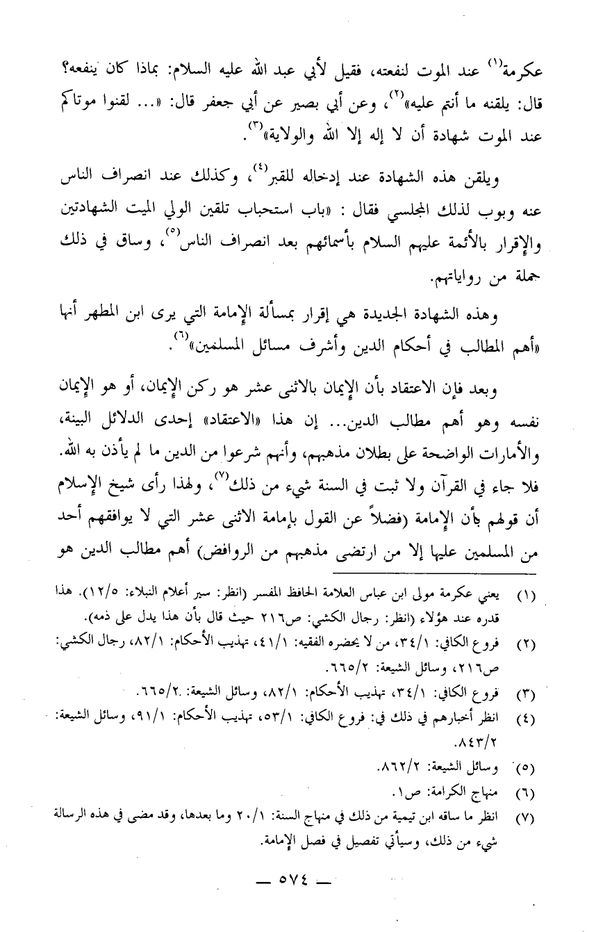 وهذه الشهادة الجديدة هي إقرار بمسألة الإمامة التي يرى ابن المطهر أنها "أهم المطالب في أحكام الدين وأشرف مسائل المسلمين" (¬6) .