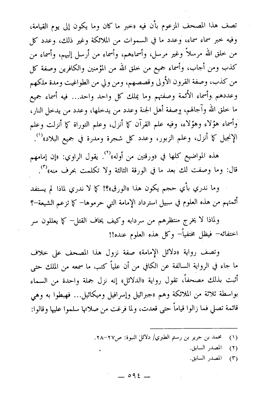 وما ندري بأي حجم يكون هذا "الورق"؟! كما لا ندري لماذا لم يستفد أئمتهم من هذه العلوم في سبيل استرداد الإمامة التي حرموها - كما تزعم الشيعة -؟
