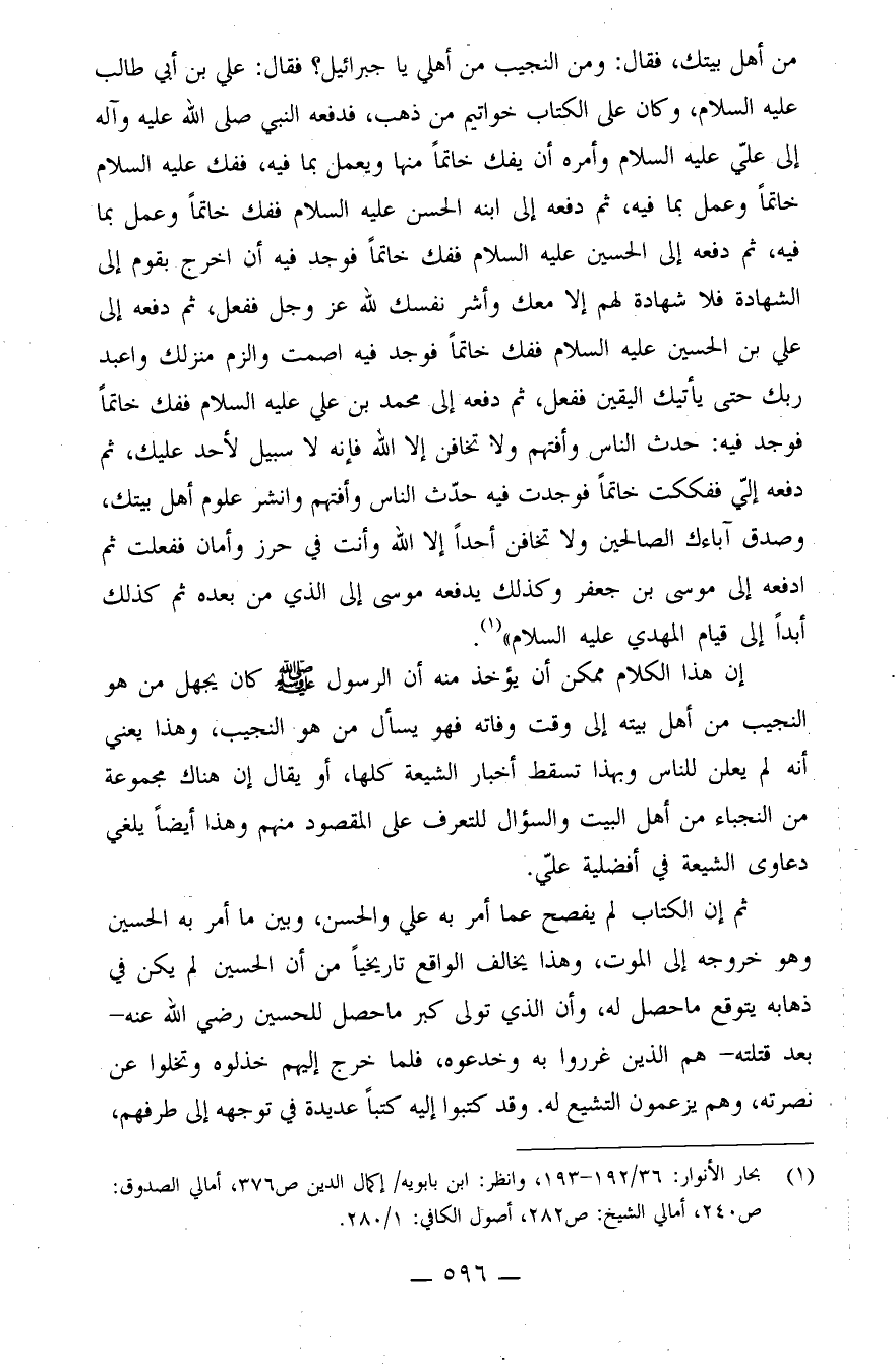 (¬1) بحار الأنوار: 36/192-193، وانظر: ابن بابويه/ إكمال الدين/ ص376، أمالي الصدوق: ص240، أمالي الشيخ: ص282، أصول الكافي: 1/280