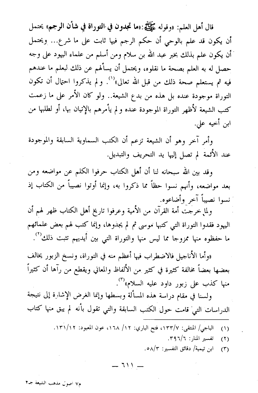 وأمر آخر وهو أن الشيعة تزعم أن الكتب السماوية السابقة والموجودة عند الأئمة لم تصل إليها يد التحريف والتبديل.