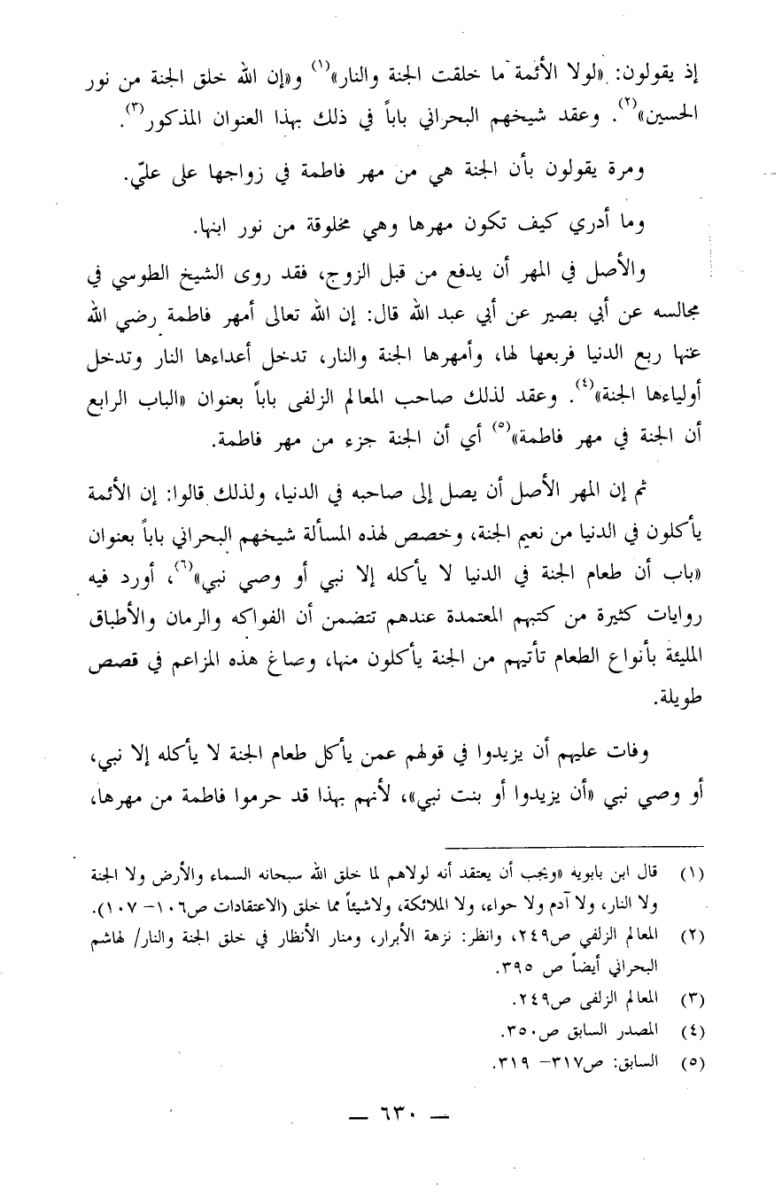 (¬2) المعالم الزلفى: ص249، وانظر: نزهة الأبرار، ومنار الأنظار في خلق الجنّة والنّار/ لهاشم البحراني أيضًا: ص395