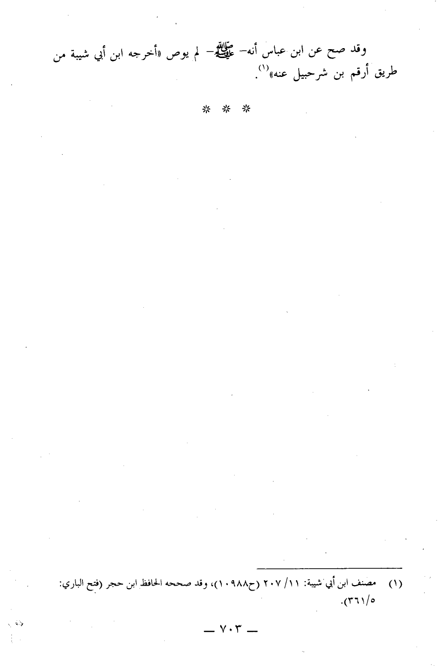 وقد صح عن ابن عباس أنه صلى الله عليه وسلم لم يوص "أخرجه ابن أبي شيبة من طريق أرقم بن شرحبيل عنه" (¬1) .