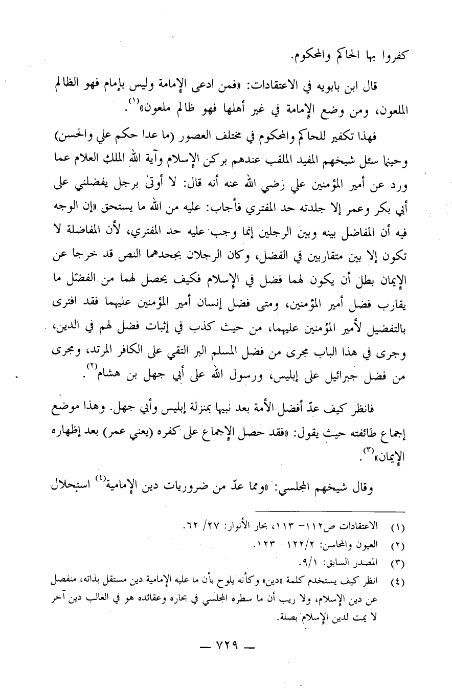 (¬4) انظر كيف يستخدم كلمة "دين" وكأنّه يلوح بأنّ ما عليه الإماميّة دين مستقلّ بذاته، منفصل عن دين الإسلام، ولا ريب أنّ ما سطّره المجلس في بحاره وعقائده هو في الغالب دين آخر لا يمتّ لدين الإسلام بصلة