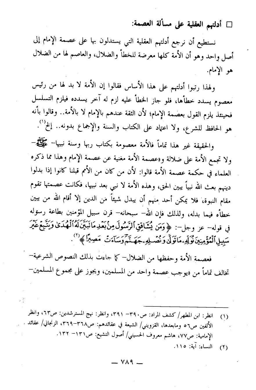 (¬1) انظر: ابن المطهر/ كشف المراد: ص390-391، وانظر: نهج المسترشدين: ص63، وانظر: الألفين: ص56 وما بعدها، القزويني/ الشيعة في عقائدهم: ص368-369، الزنجاني/ عقائد الإمامية: ص77، هاشم معروف الحسيني/ أصول التشيع: ص131-132.