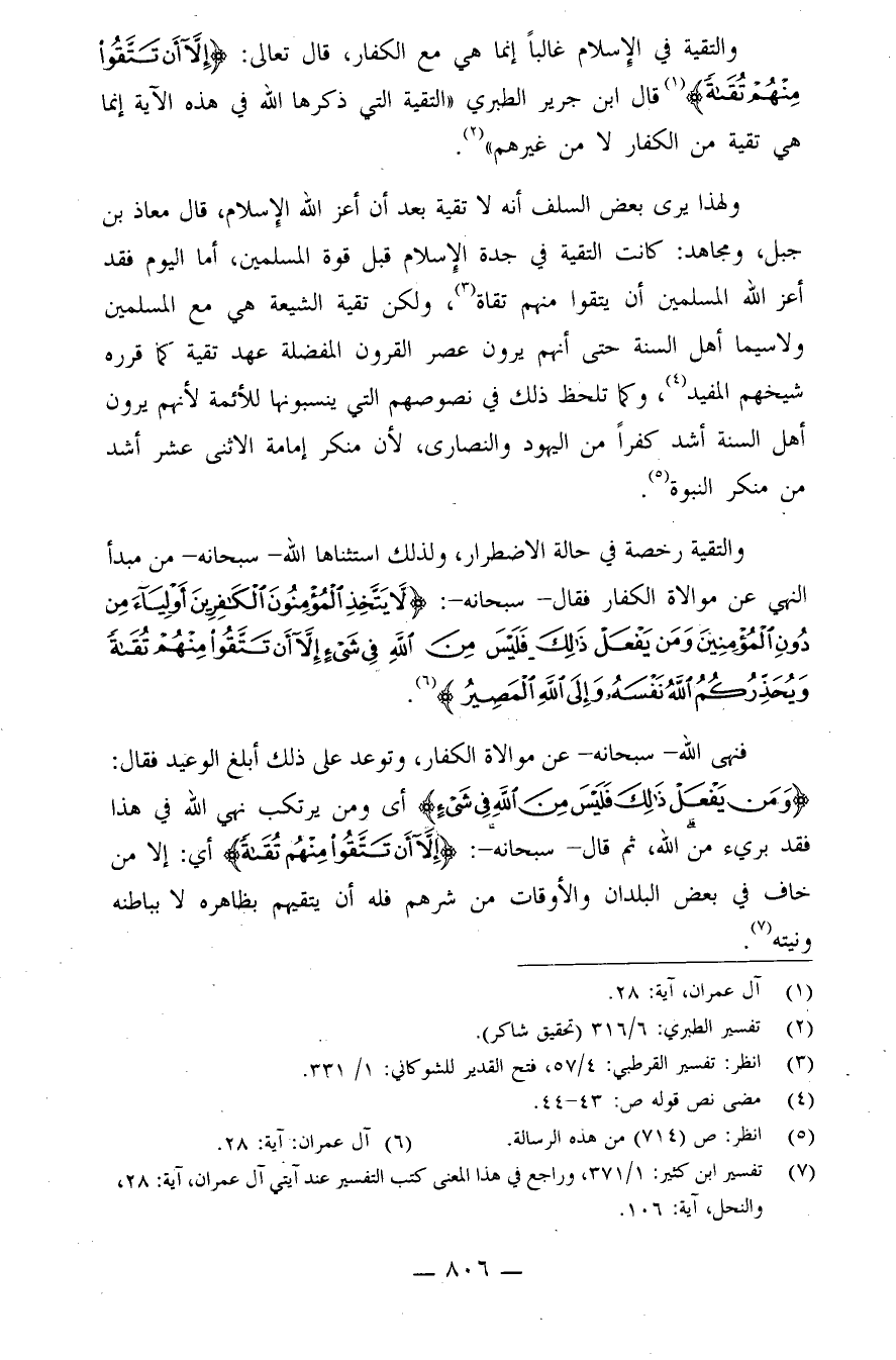 (¬7) تفسير ابن كثير: 1/371، وراجع في هذا المعنى كتب التفسير عند آيتي: آل عمران، آية: 28، والنحل، آية:106