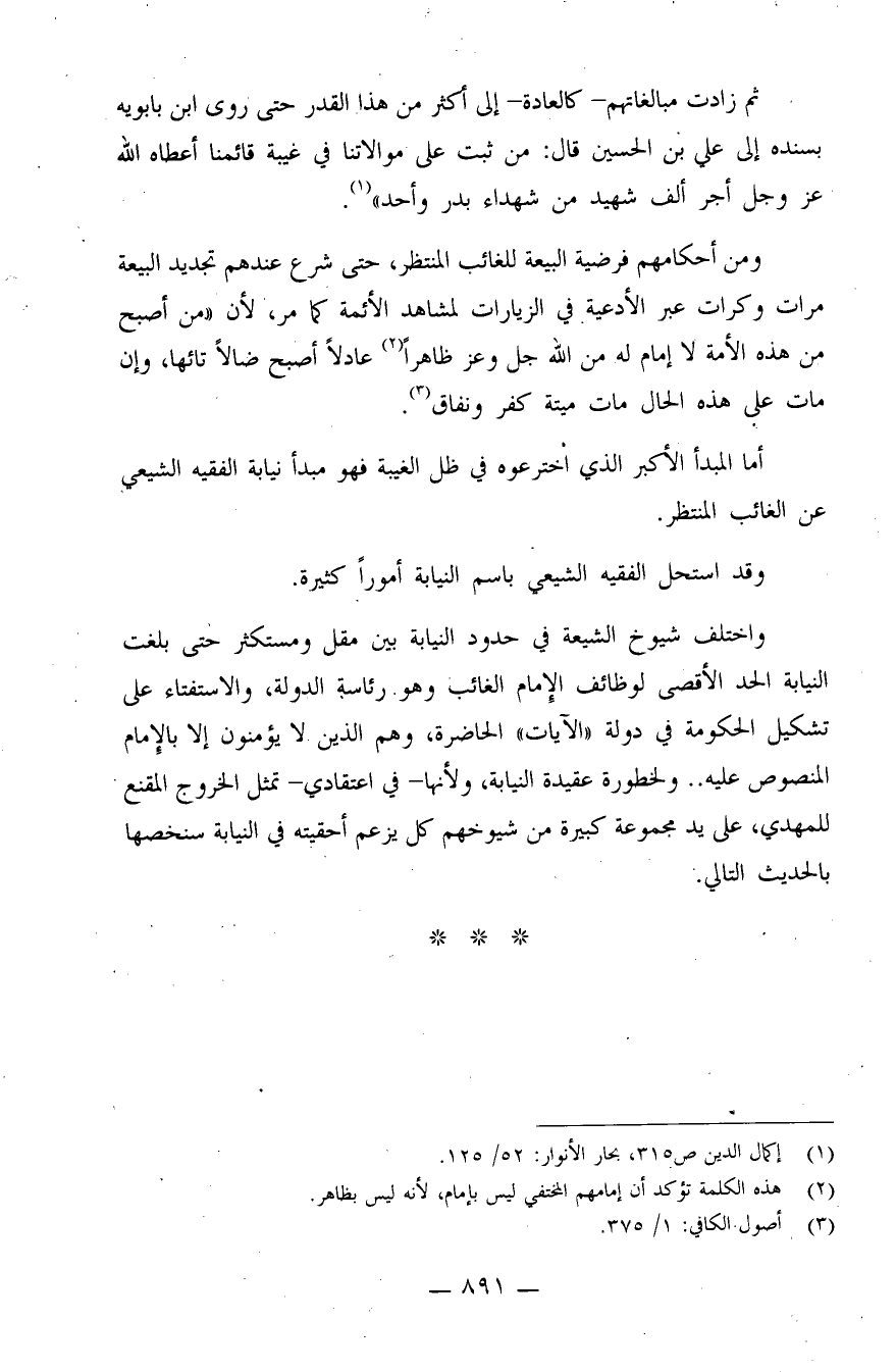 أما المبدأ الأكبر الذي اخترعوه في ظل الغيبة فهو مبدأ نيابة الفقيه الشيعي عن الغائب المنتظر.