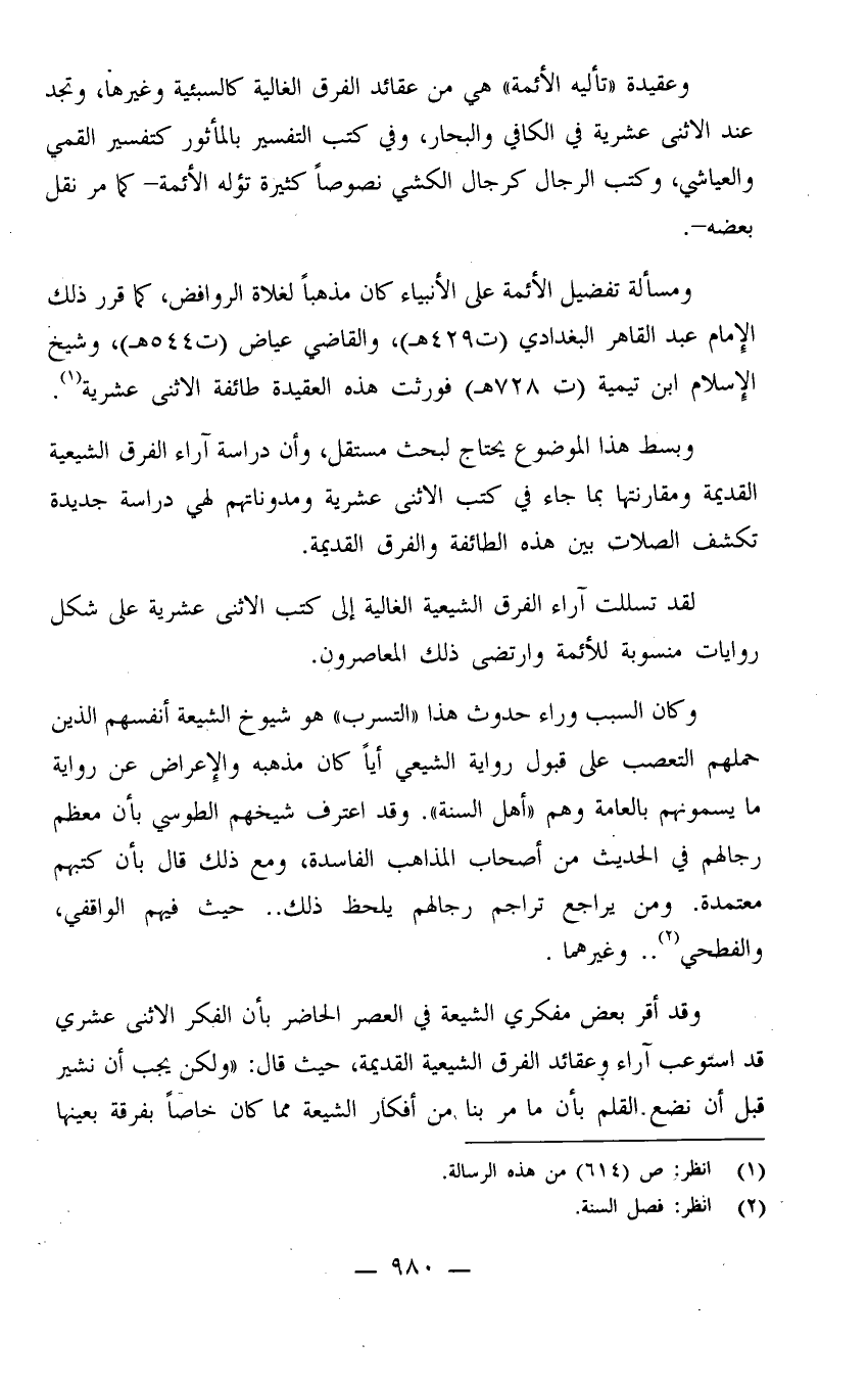 لقد تسللت آراء الفرق الشيعية الغالية إلى كتب الاثني عشرية على شكل روايات منسوبة للأئمة وارتضى ذلك المعاصرون.