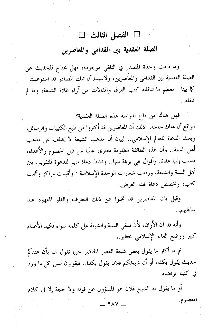 الفصل الثالث: الصلة العقدية بين القدامى والمعاصرين