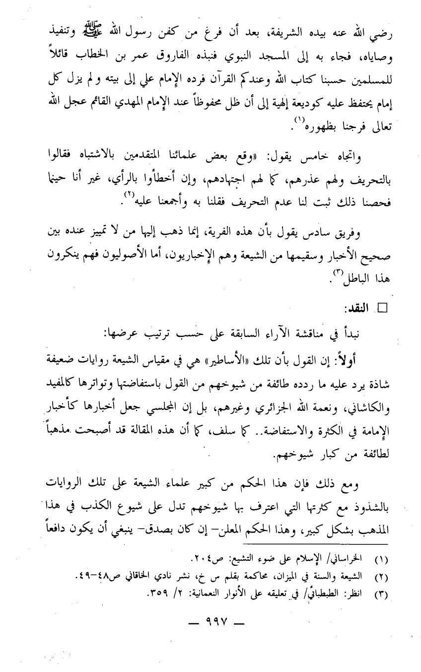 (¬1) الخراساني/ الإسلام على ضوء التشيع: ص204