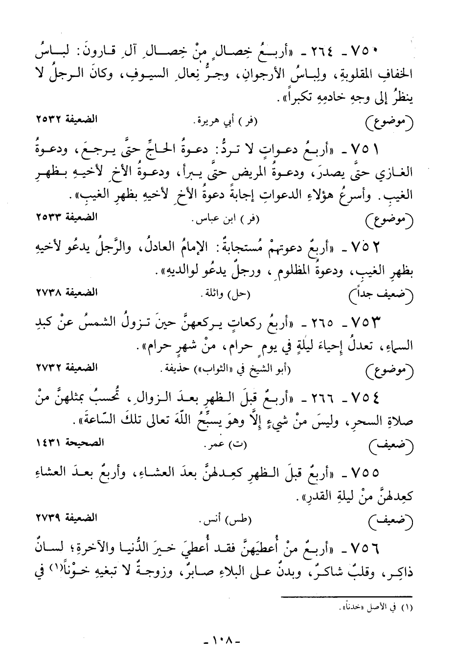 750 - أربع خصال من خصال آل قارون لباس الخفاف المقلوبة ولباس الأرجوان وجر نعال السيوف وكان الرجل لا ينظر إلى وجه خادمه تكبرا