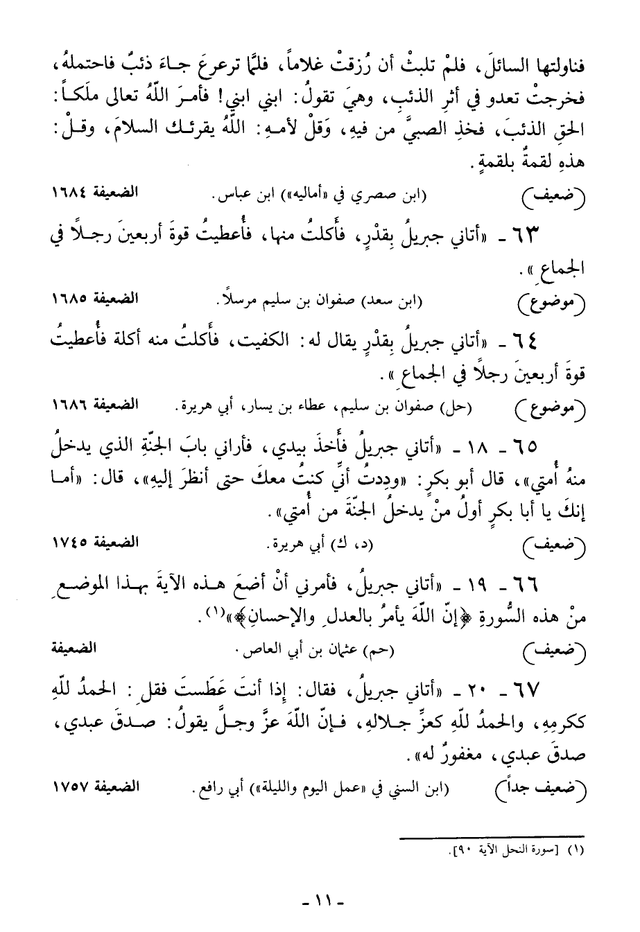 63 - أتاني جبريل بقدر فأكلت منها فأعطيت قوة أربعين رجلا في الجماع