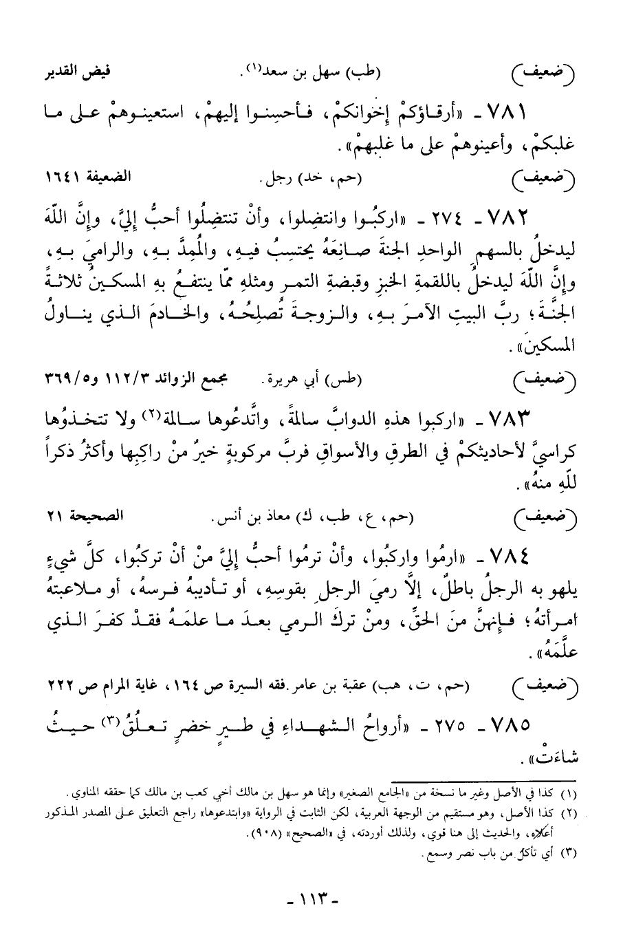 783 - اركبوا هذه الدواب سالمة واتدعوها سالمة ولا تتخذوها كراسي (لأحاديثكم في الطرق والأسواق فرب مركوبة خير من راكبها وأكثر ذكرا منه)