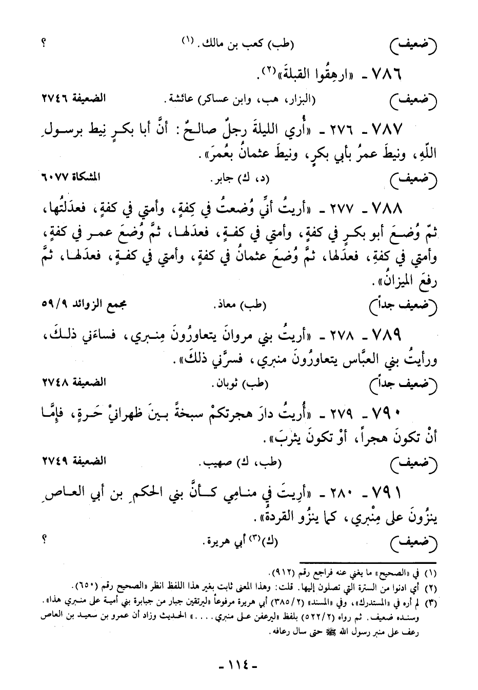 789 - أريت بني مروان يتعاورون منبري فساءني ذلك ورأيت بني العباس يتعاورون منبري فسرني ذلك