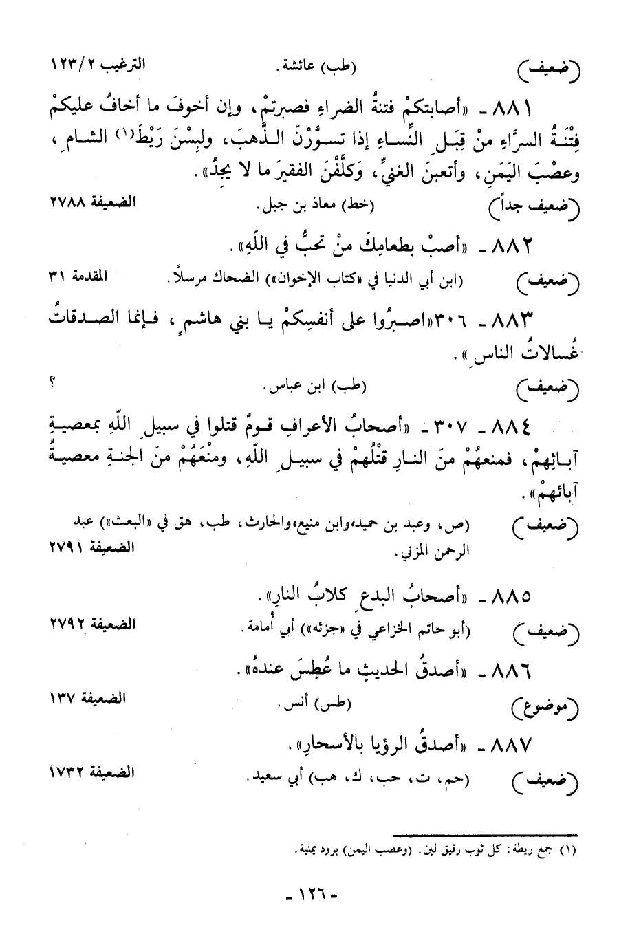 881 - أصابتكم فتنة الضراء فصبرتم وإن أخوف ما أخاف عليكم فتنة السراء من قبل النساء إذا تسورن الذهب ولبسن ريط الشام وعصب اليمن وأتعبن الغني وكلفن الفقير ما لا يجد