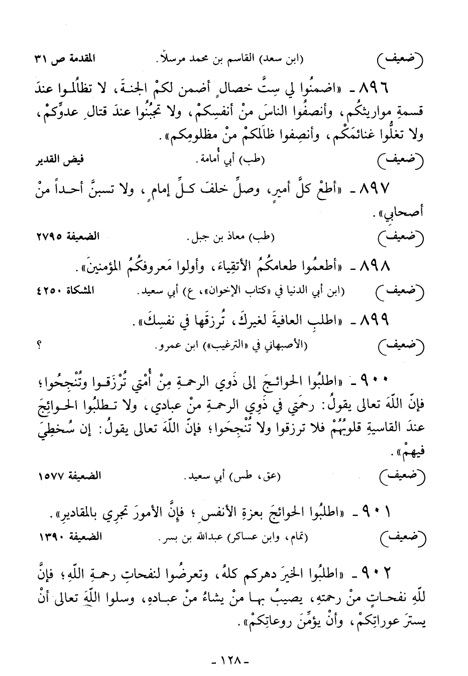 896 - اضمنوا لي ست خصال أضمن لكم الجنة لا تظالموا عند قسمة مواريثكم وأنصفوا الناس من أنفسكم ولا تجبنوا عند قتال عدوكم ولا تغلوا غنائمكم وأنصفوا ظالمكم من مظلومكم