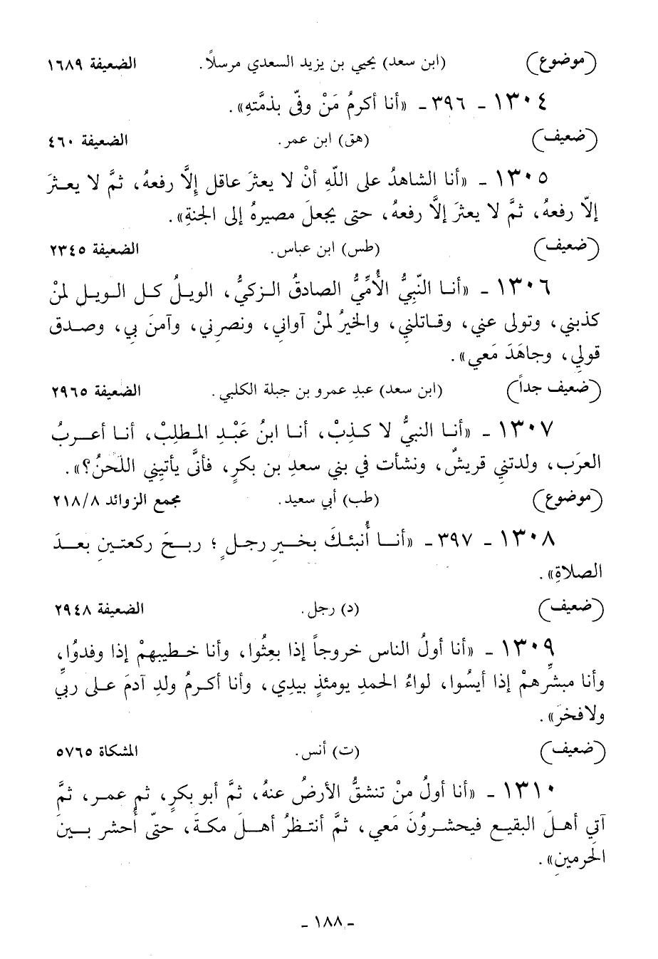 1306 - أنا النبي الأمي الصادق الزكي الويل لمن كذبني وتولى عني وقاتلني والخير لمن آواني ونصرني وآمن بي وصدق قولي وجاهد معي