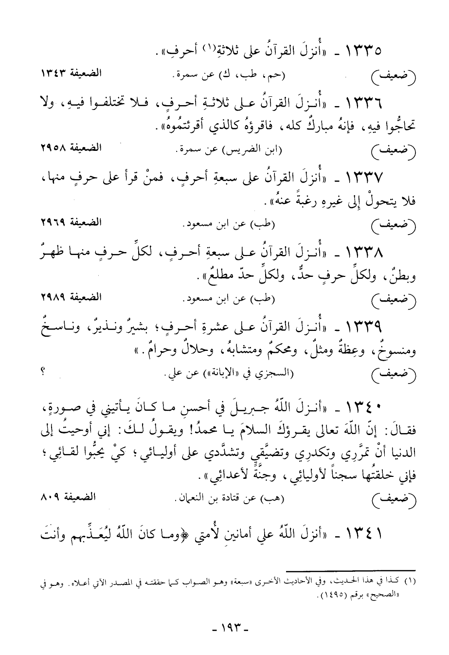 1338 - أنزل القرآن على سبعة أحرف لكل حرف منها ظهر وبطن ولكل حرف حد ولكل حد مطلع