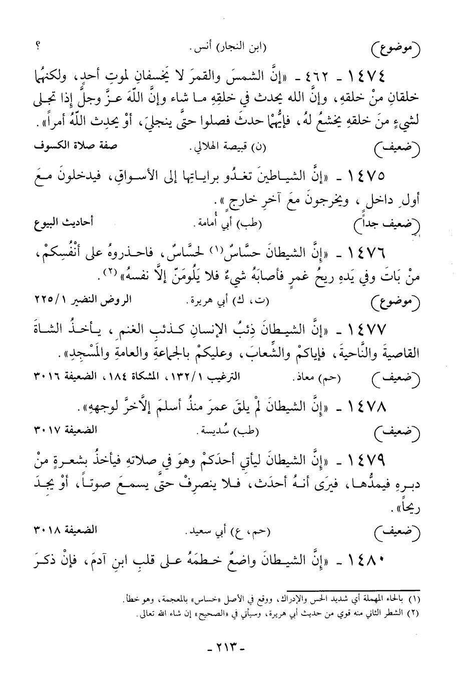 1475 - إن الشياطين تغدو براياتها إلى الأسواق فيدخلون مع أول داخل ويخرجون مع آخر خارج